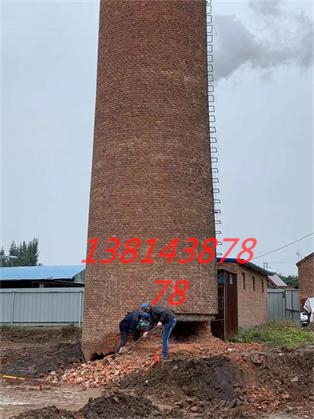 人工整體定向放倒煙囪拆除現在是大家比較熟悉的一個拆除煙囪的方式,相信許許多多的成功案例已經折服眾多施工企業。采用這種方式其實比爆破煙囪拆除法又快捷又安全又節省施工費用,一般選擇該方式進行煙囪拆除施工時必須現場需要滿足至少有一至二面開闊的場地供煙囪放倒所需的空地。正常情況下在進行煙囪整體放倒拆除時首先要確定傾倒的中心位置然后依據該位置在煙囪底部筒體劃好需要拆除的磚砌體,在施工時依據中心點先從一側進行開洞拆除,然后采取退步拆除法來對煙囪墻體破碎拆除。通俗的來講就是借助劃好的中心線把煙囪底部的周長測量好,然后根據周長的一半確定煙囪拆除的墻體。正常情況下拆除至周長一半或快要一半時煙囪筒體會出現明顯裂紋或磚塊剝落的現象,那么就需要停止所有煙囪拆除工序的施工,所有施工人員撤離至安全地域,煙囪不一會就會自然傾倒。那么在遇到拆除至周長一半時煙囪還是沒有傾倒該怎么辦?首先應該停止煙囪拆除施工,判定一下問題的所在原因,然后可以繼續拆除或者反向拆除煙囪磚砌體的方式(同步進行預防煙囪傾倒時會有偏向發生)。
